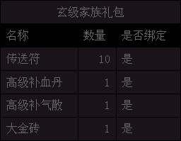 家族排行榜六至十位即每位家族成员得到“玄级 家族礼包”*1;