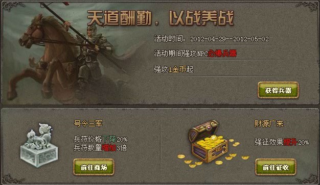 1、活动期间,强攻NPC必掉兵器碎片(仅限有几率掉落兵器的NPC)。