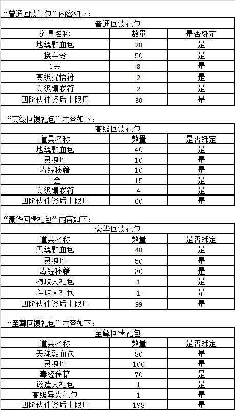 2、累计消费达到3000不绑定元宝即可领取1个“普通回馈礼包”,开启礼包可直接获得