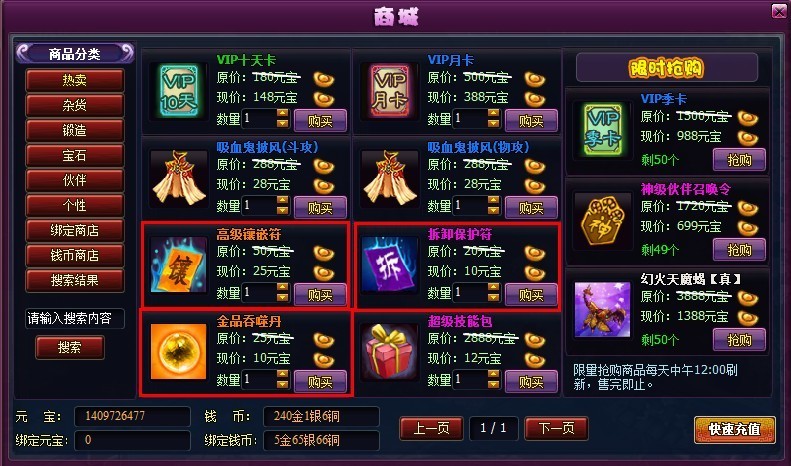 角色突飞大礼包:限时抢购价格9元宝