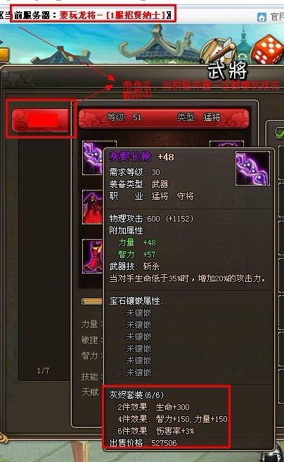 截图(包含主将名,套装属性,当前服务器截图)
