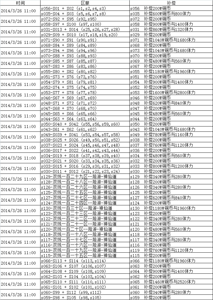 大家好!为了让大家更好体验游戏,结交到更多的神仙道好友,我们将于3月26日10:00对部分区服(具体如下)进行数据互通;届时玩家们将无法登陆游戏。数据互通完成时间将根据实际情况提前或者延后,希望大家互相转告,谢谢大家一贯的支持与厚爱。